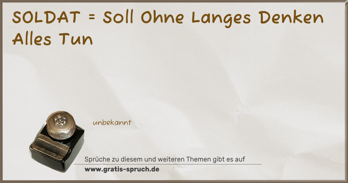 SOLDAT = Soll Ohne Langes Denken Alles Tun
