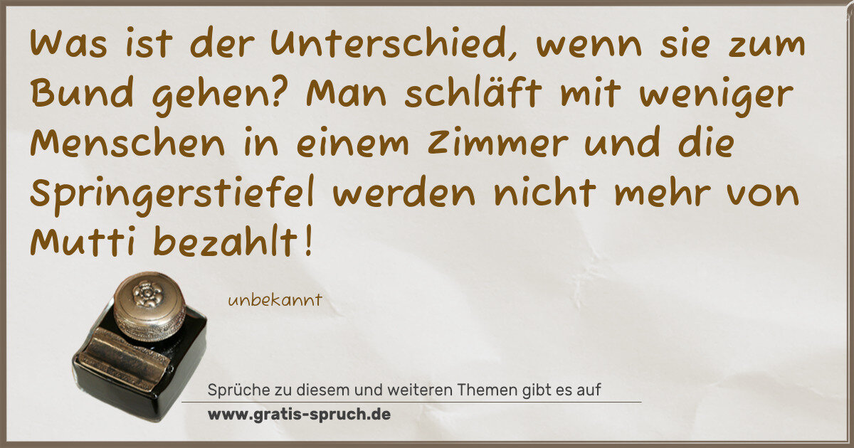Was ist der Unterschied, wenn sie zum Bund gehen? Man schläft mit weniger Menschen in einem Zimmer und die Springerstiefel werden nicht mehr von Mutti bezahlt!