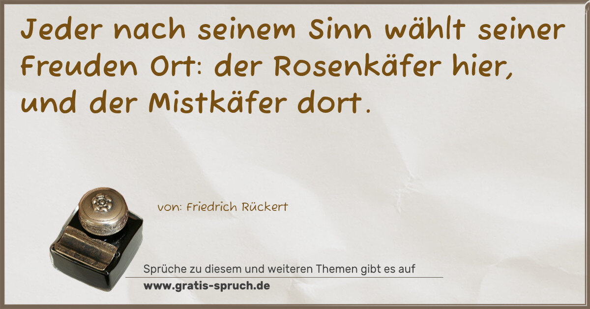 Jeder nach seinem Sinn wählt seiner Freuden Ort: der Rosenkäfer hier, und der Mistkäfer dort.
