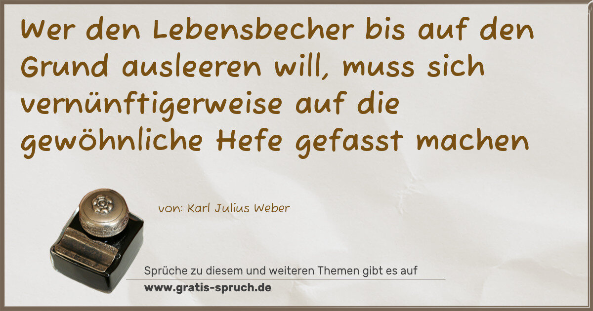 Wer den Lebensbecher bis auf den Grund ausleeren will, muss sich vernünftigerweise auf die gewöhnliche Hefe gefasst machen