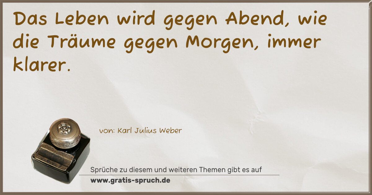 Das Leben wird gegen Abend, wie die Träume gegen Morgen, immer klarer.