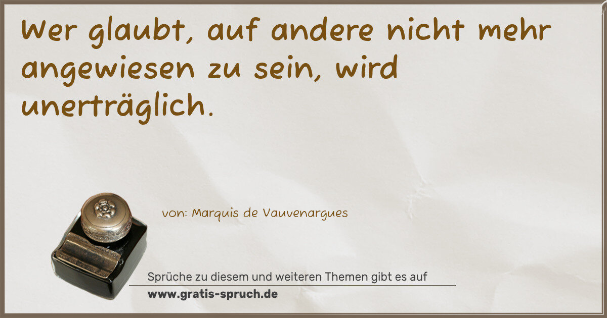 Wer glaubt, auf andere nicht mehr angewiesen zu sein, wird unerträglich.