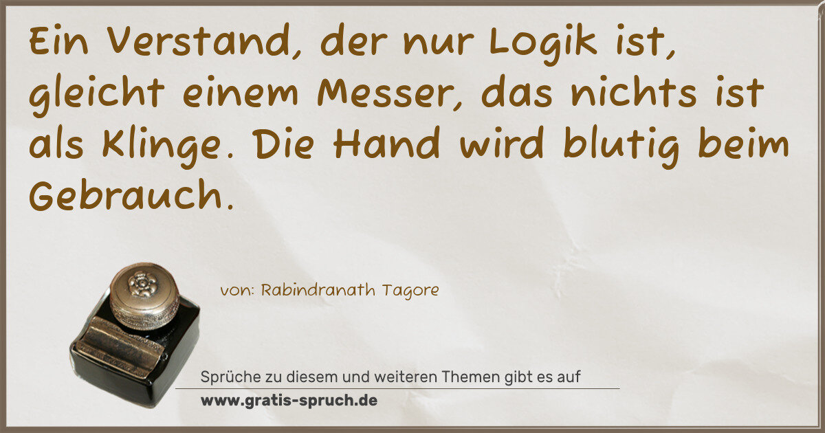 Ein Verstand, der nur Logik ist, gleicht einem Messer, das nichts ist als Klinge. Die Hand wird blutig beim Gebrauch.