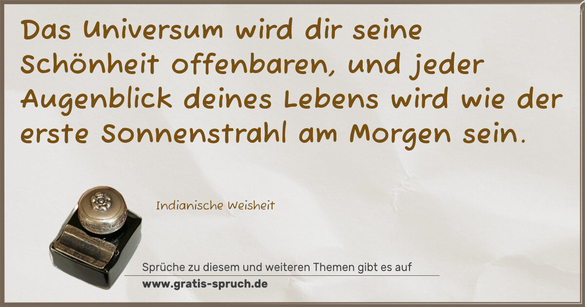 Das Universum wird dir seine Schönheit offenbaren, und jeder Augenblick deines Lebens wird wie der erste Sonnenstrahl am Morgen sein.
