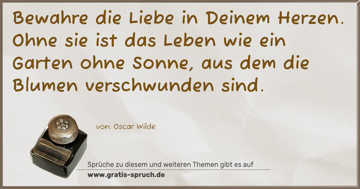 Bewahre die Liebe in Deinem Herzen. Ohne sie ist das Leben wie ein Garten ohne Sonne, aus dem die Blumen verschwunden sind.