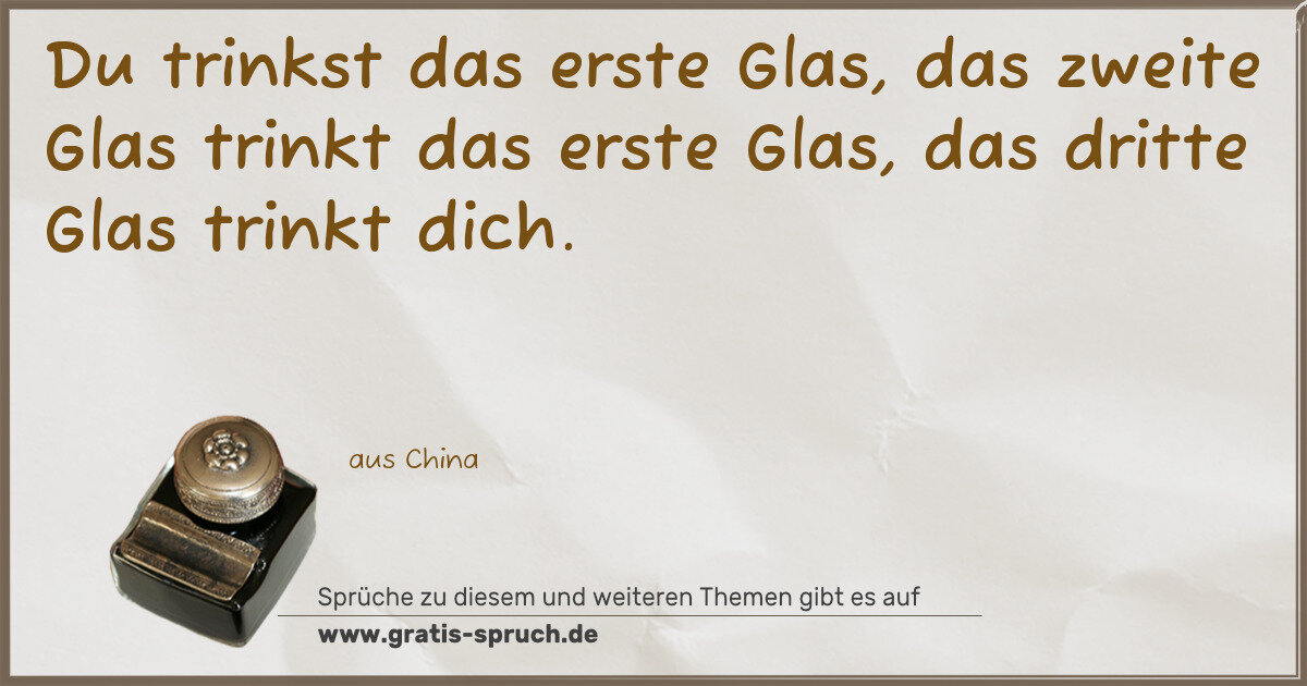 Du trinkst das erste Glas, das zweite Glas trinkt das erste Glas, das dritte Glas trinkt dich.