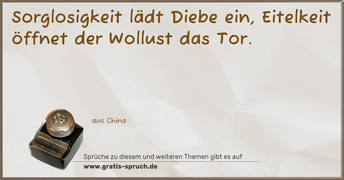 Sorglosigkeit lädt Diebe ein, Eitelkeit öffnet der Wollust das Tor.