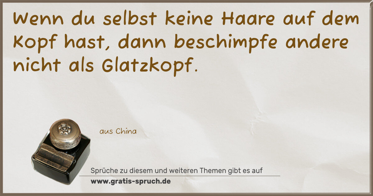 Wenn du selbst keine Haare auf dem Kopf hast, dann beschimpfe andere nicht als Glatzkopf.