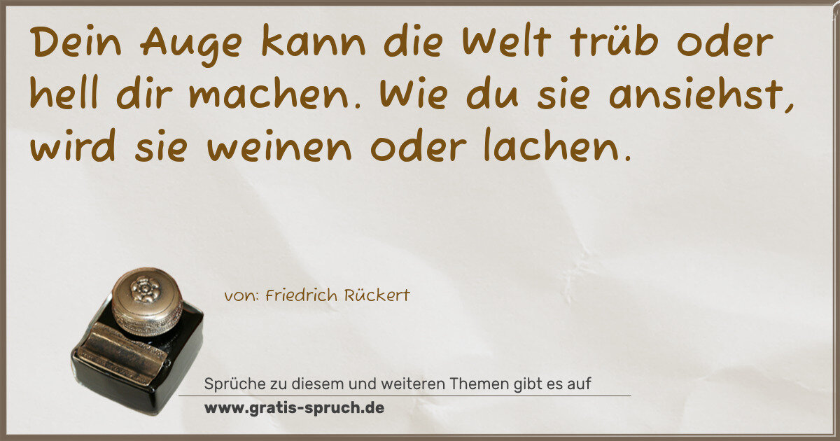 Dein Auge kann die Welt trüb oder hell dir machen. Wie du sie ansiehst, wird sie weinen oder lachen.