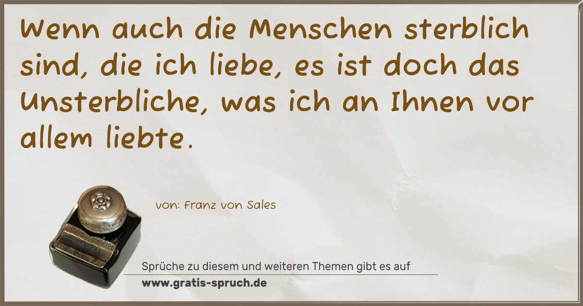 Wenn auch die Menschen sterblich sind, die ich liebe, es ist doch das Unsterbliche, was ich an Ihnen vor allem liebte.