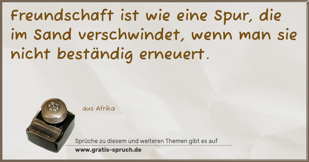 Freundschaft ist wie eine Spur, die im Sand verschwindet, wenn man sie nicht beständig erneuert.