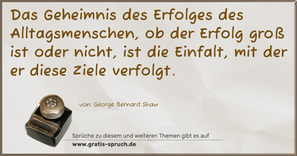 Das Geheimnis des Erfolges des Alltagsmenschen, ob der Erfolg groß ist oder nicht, ist die Einfalt, mit der er diese Ziele verfolgt.