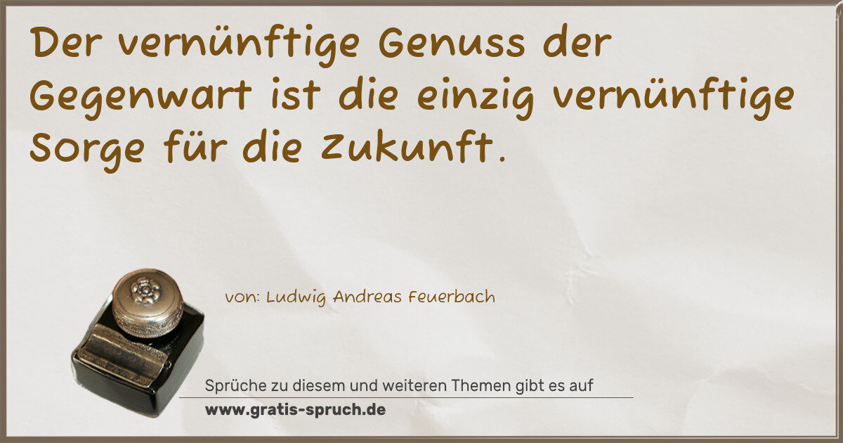 Der vernünftige Genuss der Gegenwart ist die einzig vernünftige Sorge für die Zukunft.