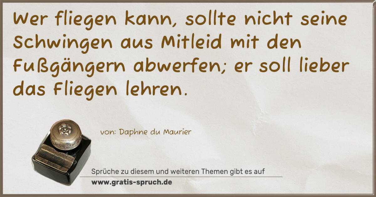 Wer fliegen kann, sollte nicht seine Schwingen aus Mitleid mit den Fußgängern abwerfen; er soll lieber das Fliegen lehren.