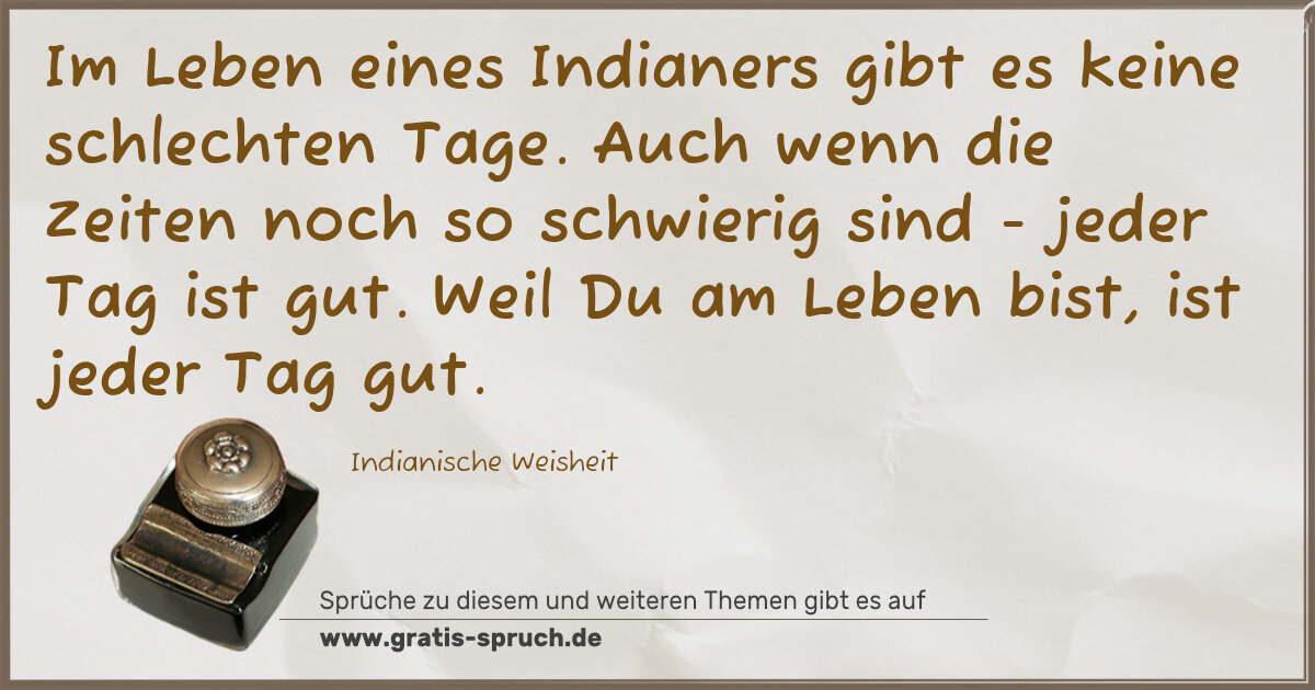 Auch wenn die Zeiten noch so schwierig sind - jeder Tag ist gut. Weil Du am Leben bist, ist jeder Tag gut.Indianische Weisheit