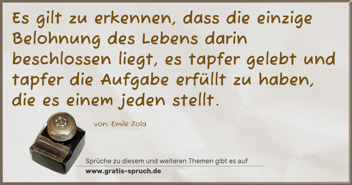 »Es gilt zu erkennen, dass die einzige Belohnung des Lebens darin beschlossen liegt, es tapfer gelebt und tapfer die Aufgabe erfüllt zu haben, die es einem jeden stellt.