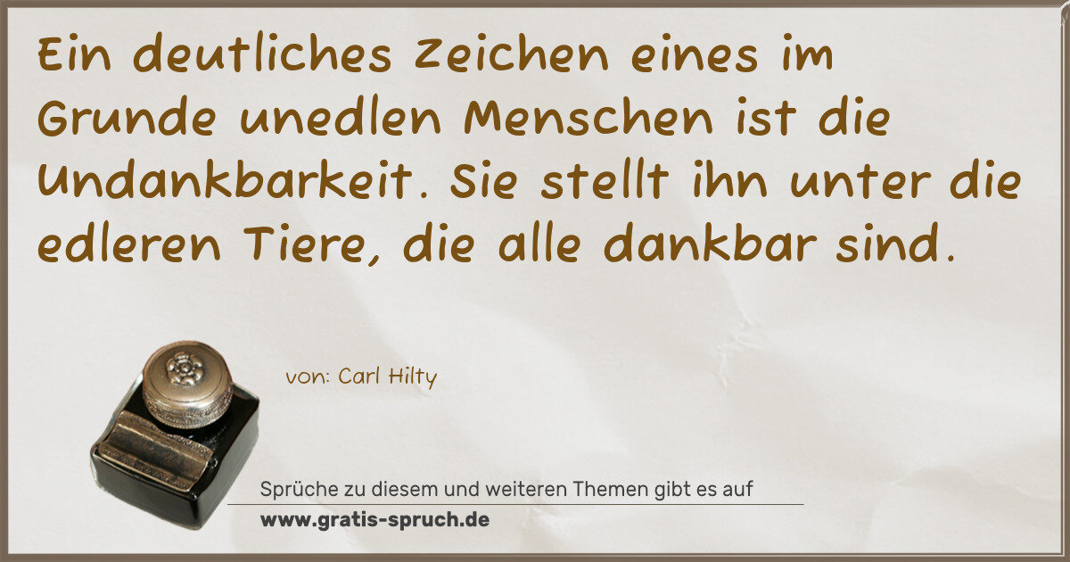 »Ein deutliches Zeichen eines im Grunde unedlen Menschen ist die Undankbarkeit. Sie stellt ihn unter die edleren Tiere, die alle dankbar sind.