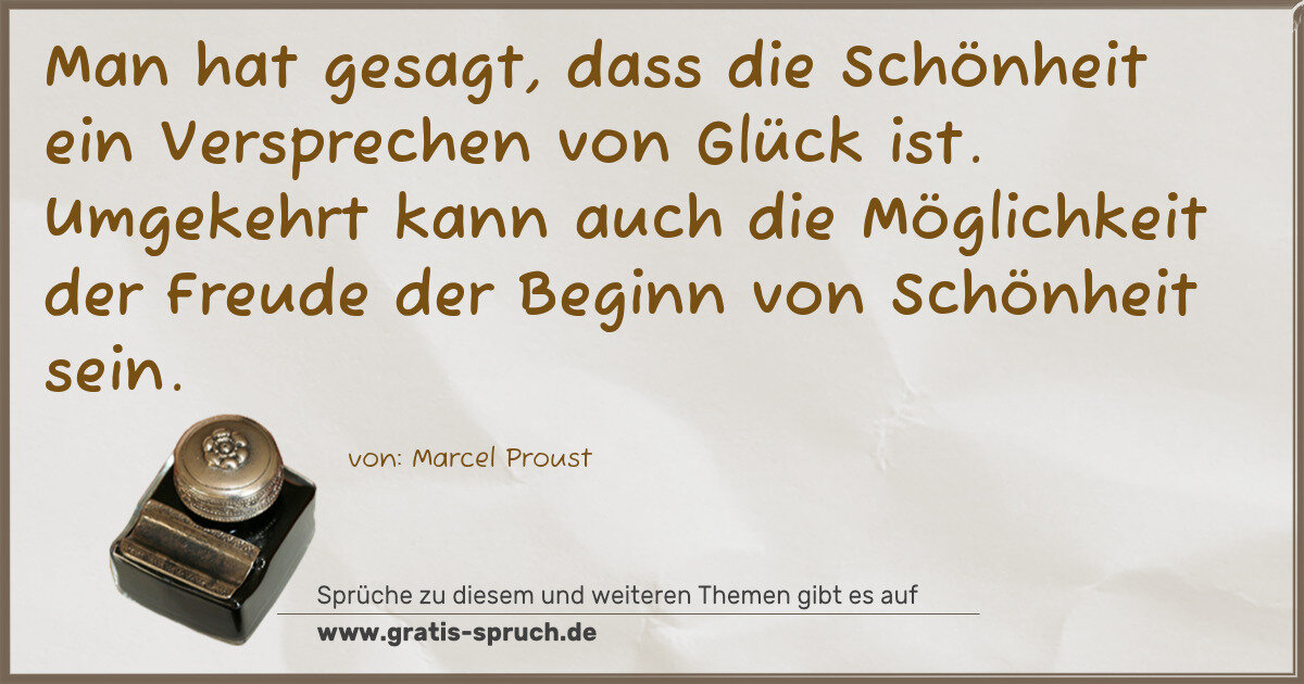 »Man hat gesagt, dass die Schönheit ein Versprechen von Glück ist. Umgekehrt kann auch die Möglichkeit der Freude der Beginn von Schönheit sein.