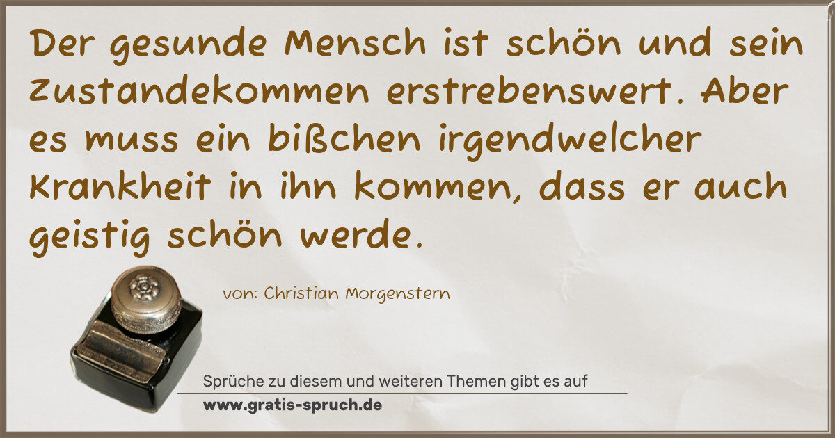 »Der gesunde Mensch ist schön und sein Zustandekommen erstrebenswert. Aber es muss ein bißchen irgendwelcher Krankheit in ihn kommen, dass er auch geistig schön werde.