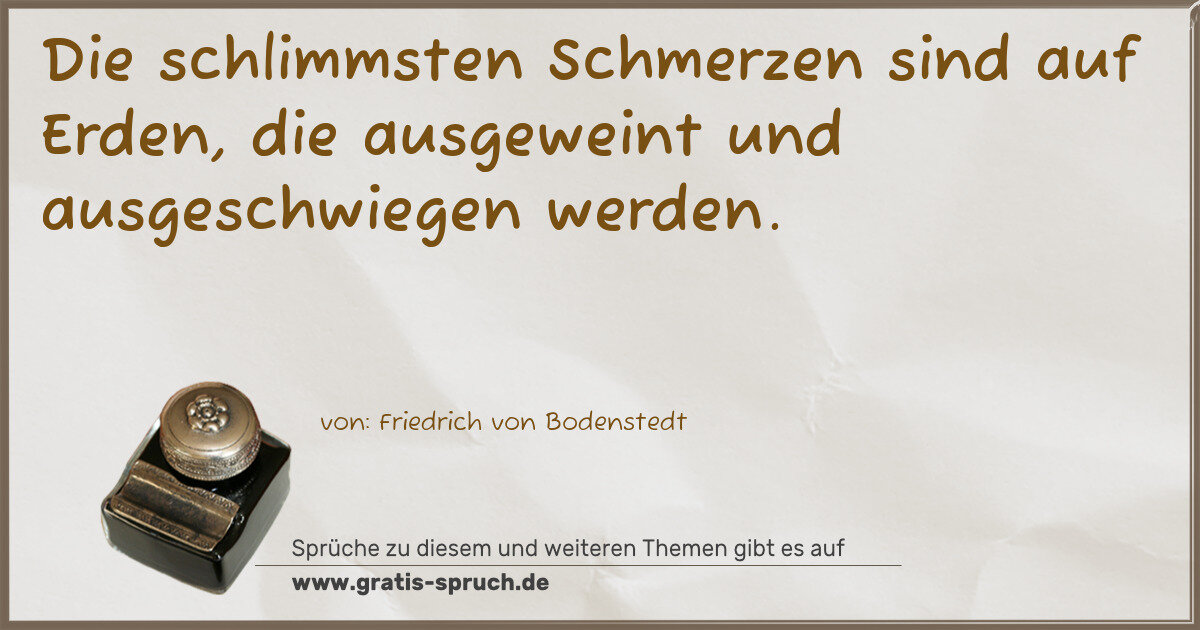 Die schlimmsten Schmerzen sind auf Erden, die ausgeweint und ausgeschwiegen werden.