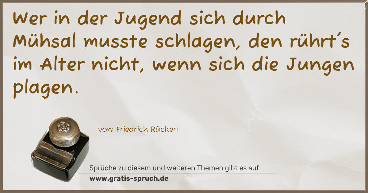 Wer in der Jugend sich durch Mühsal musste schlagen, den rührt's im Alter nicht, wenn sich die Jungen plagen.