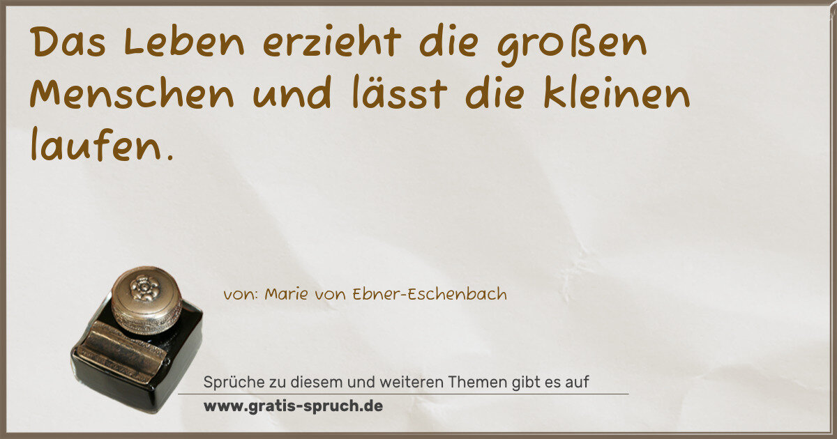 Das Leben erzieht die großen Menschen und lässt die kleinen laufen.