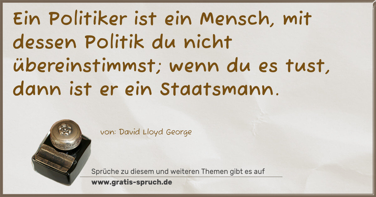 Ein Politiker ist ein Mensch, mit dessen Politik du nicht übereinstimmst; wenn du es tust, dann ist er ein Staatsmann.