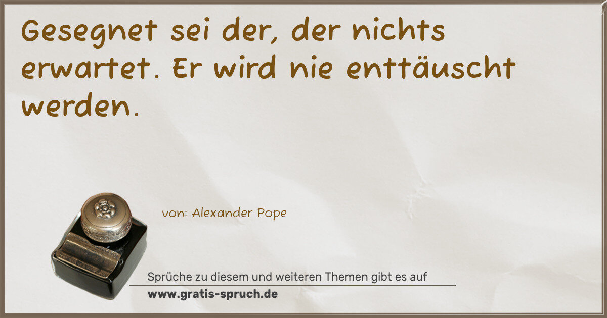 Gesegnet sei der, der nichts erwartet. Er wird nie enttäuscht werden.