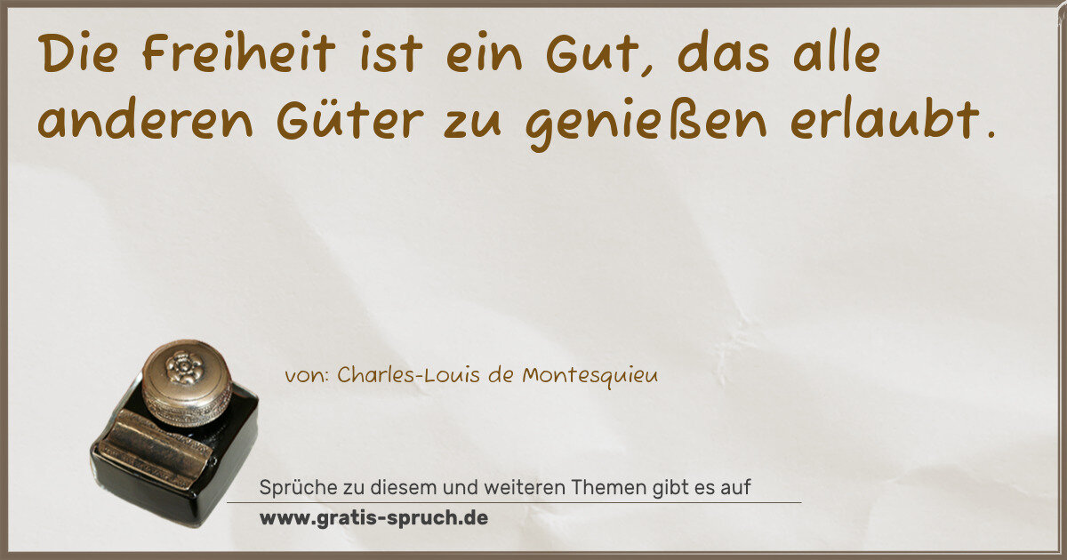 Die Freiheit ist ein Gut, das alle anderen Güter zu genießen erlaubt.