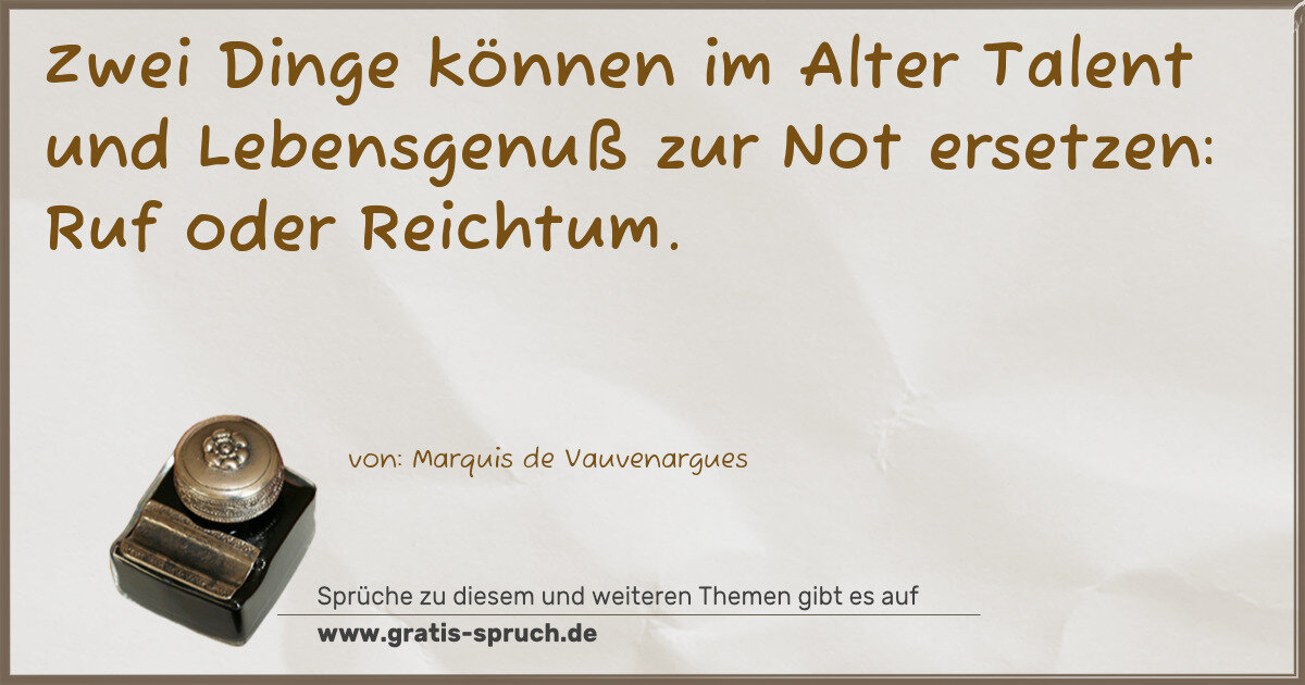 Zwei Dinge können im Alter Talent und Lebensgenuß zur Not ersetzen: Ruf oder Reichtum.