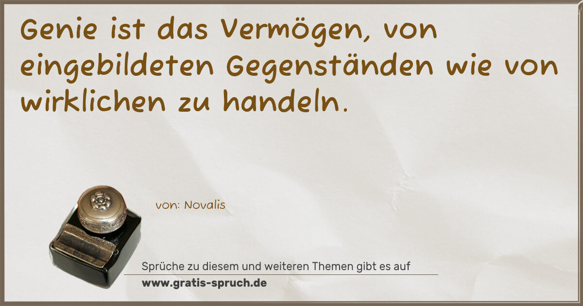 Genie ist das Vermögen, von eingebildeten Gegenständen wie von wirklichen zu handeln.