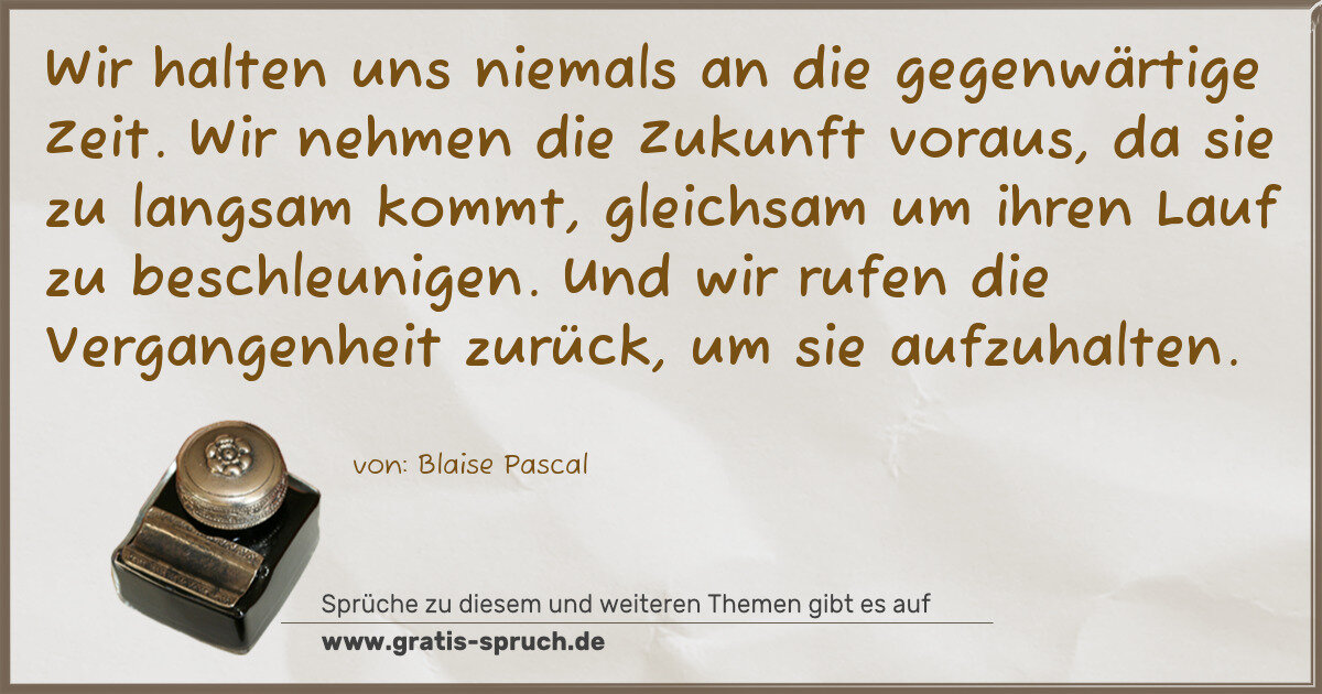 Wir nehmen die Zukunft voraus, da sie zu langsam kommt, gleichsam um ihren Lauf zu beschleunigen.