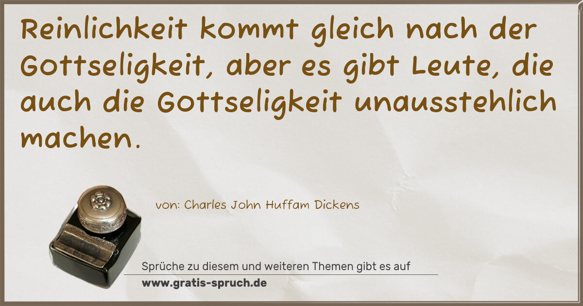 Reinlichkeit kommt gleich nach der Gottseligkeit, aber es gibt Leute, die auch die Gottseligkeit unausstehlich machen.