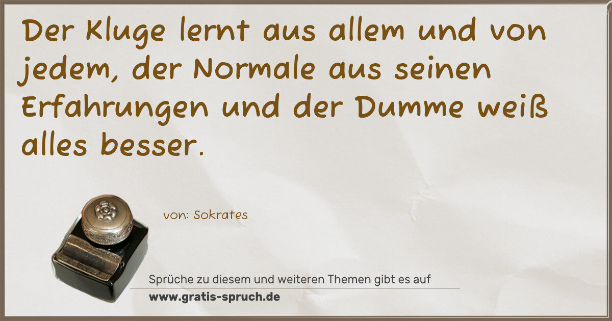 Der Kluge lernt aus allem und von jedem, der Normale aus seinen Erfahrungen und der Dumme weiß alles besser.