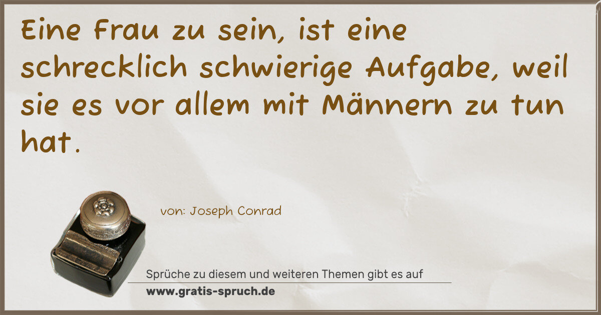 Eine Frau zu sein, ist eine schrecklich schwierige Aufgabe, weil sie es vor allem mit Männern zu tun hat.