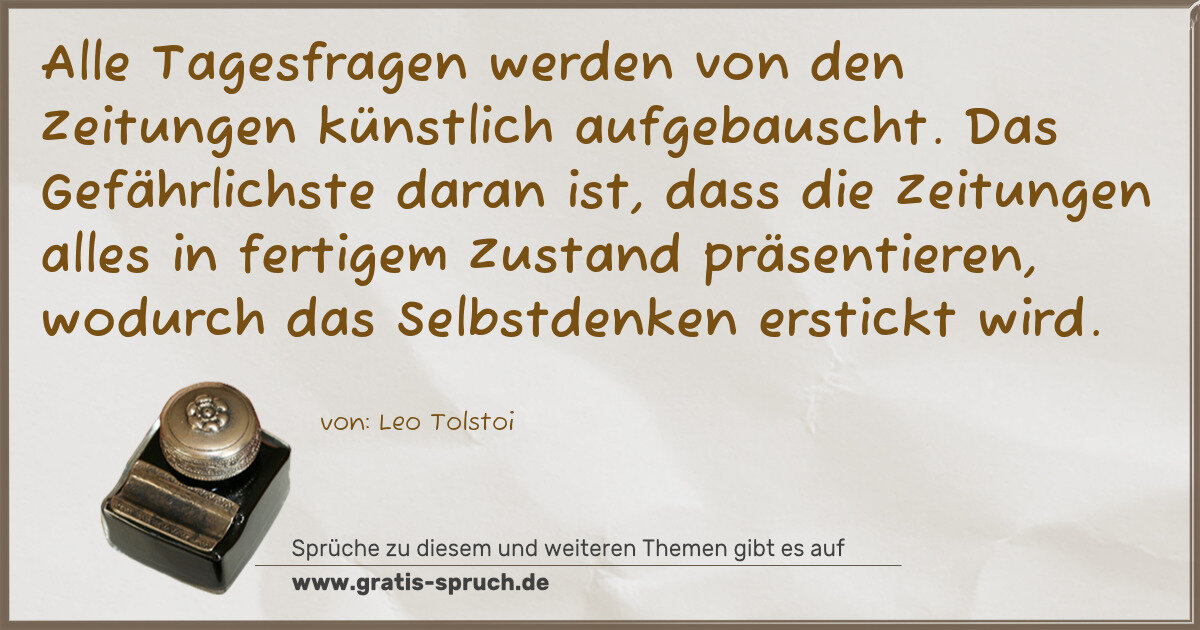 »Alle Tagesfragen werden von den Zeitungen künstlich aufgebauscht. Das Gefährlichste daran ist, dass die Zeitungen alles in fertigem Zustand präsentieren, wodurch das Selbstdenken erstickt wird.