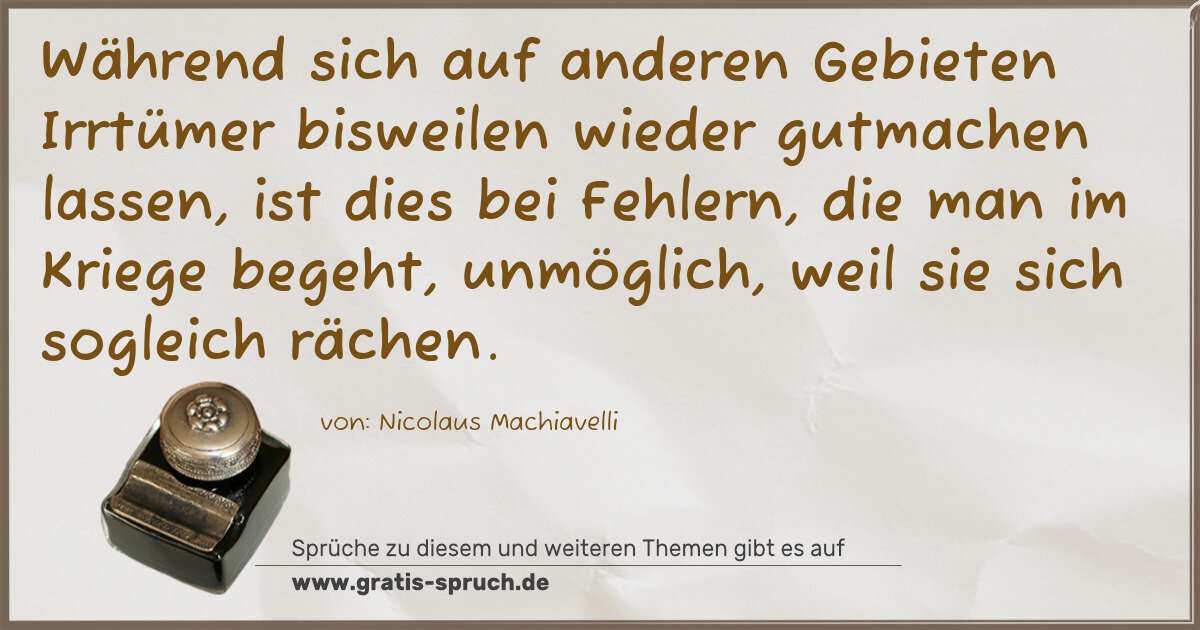 »Während sich auf anderen Gebieten Irrtümer bisweilen wieder gutmachen lassen, ist dies bei Fehlern, die man im Kriege begeht, unmöglich, weil sie sich sogleich rächen.