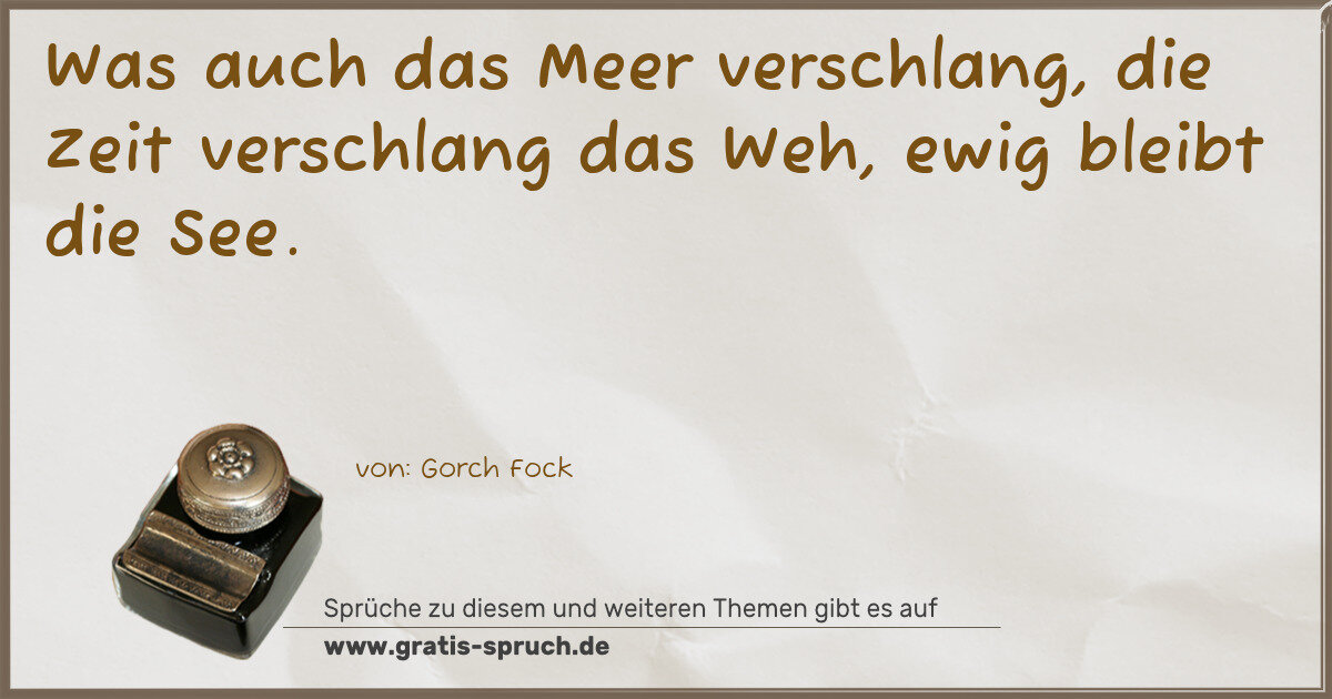 Was auch das Meer verschlang, die Zeit verschlang das Weh, ewig bleibt die See.