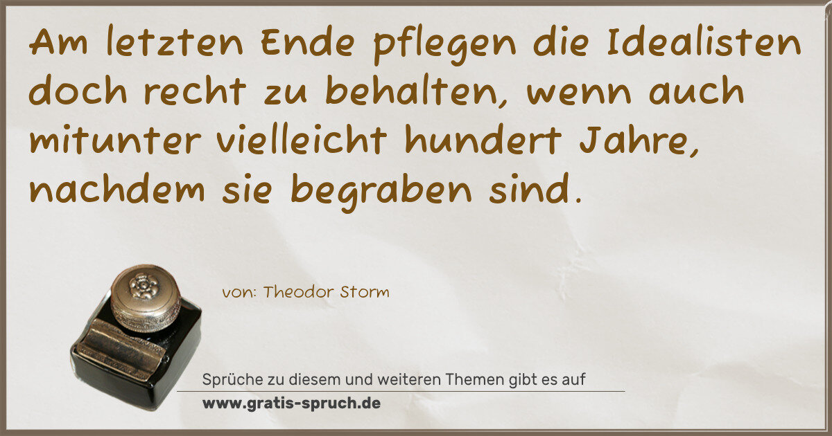 Am letzten Ende pflegen die Idealisten doch recht zu behalten, wenn auch mitunter vielleicht hundert Jahre, nachdem sie begraben sind.