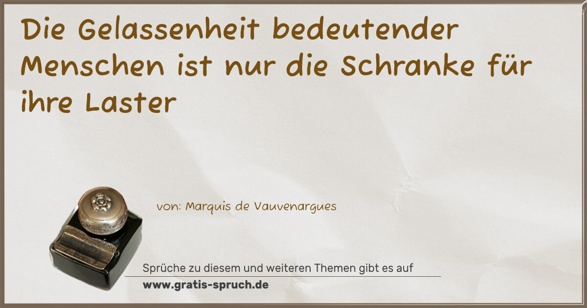Die Gelassenheit bedeutender Menschen ist nur die Schranke für ihre Laster