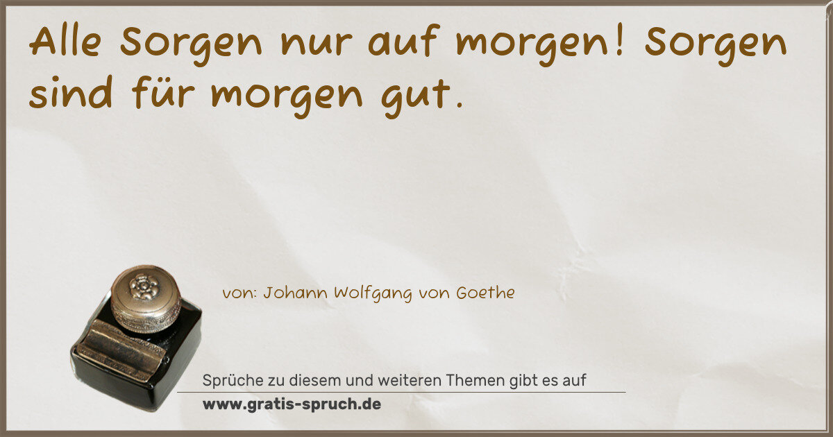 Alle Sorgen nur auf morgen! Sorgen sind für morgen gut.
