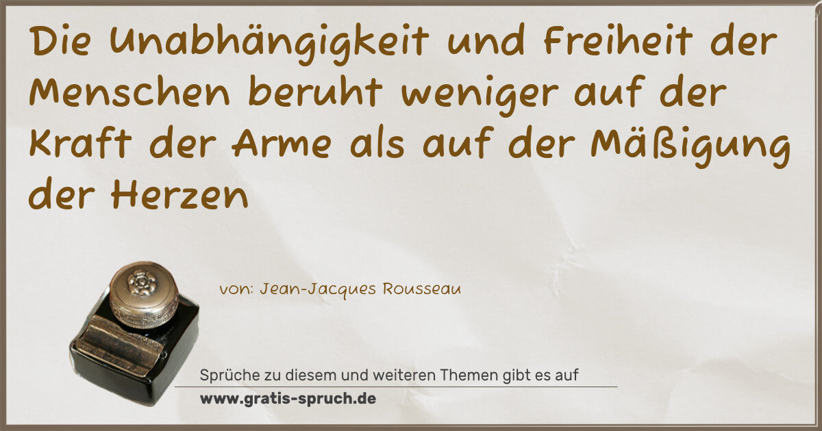 Die Unabhängigkeit und Freiheit der Menschen beruht weniger auf der Kraft der Arme als auf der Mäßigung der Herzen
