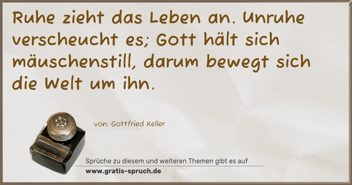Ruhe zieht das Leben an. Unruhe verscheucht es; Gott hält sich mäuschenstill, darum bewegt sich die Welt um ihn.