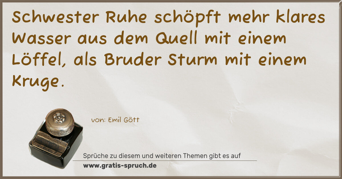 Schwester Ruhe schöpft mehr klares Wasser aus dem Quell mit einem Löffel, als Bruder Sturm mit einem Kruge.