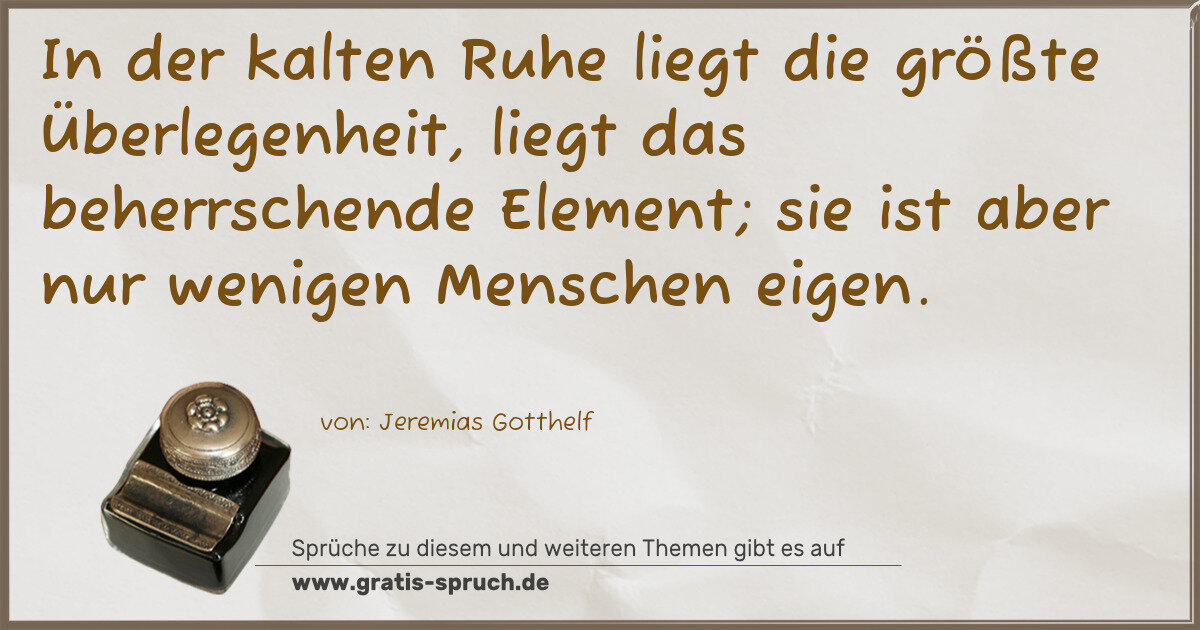 In der kalten Ruhe liegt die größte Überlegenheit, liegt das beherrschende Element; sie ist aber nur wenigen Menschen eigen.