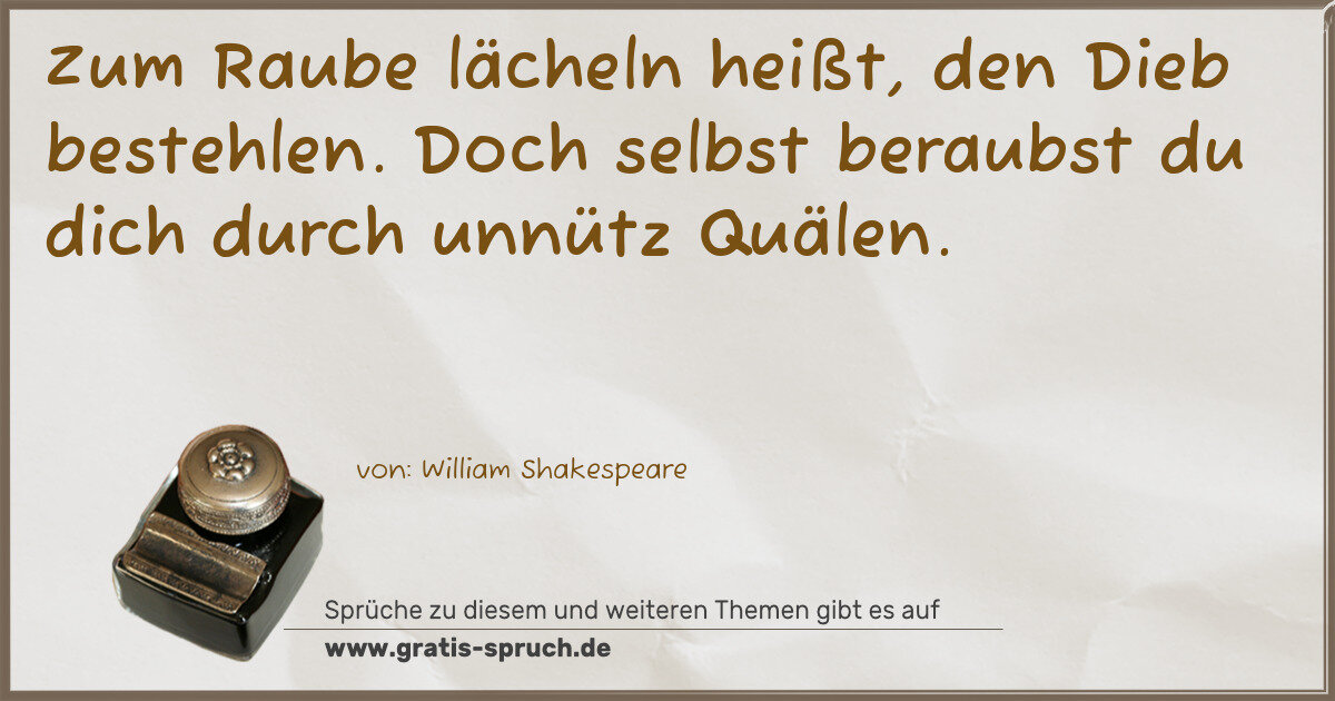 Zum Raube lächeln heißt, den Dieb bestehlen. Doch selbst beraubst du dich durch unnütz Quälen.