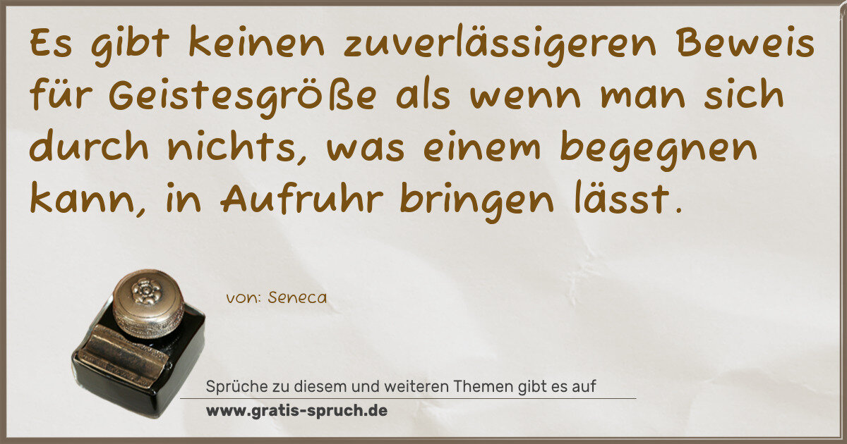 Es gibt keinen zuverlässigeren Beweis für Geistesgröße als wenn man sich durch nichts, was einem begegnen kann, in Aufruhr bringen lässt.