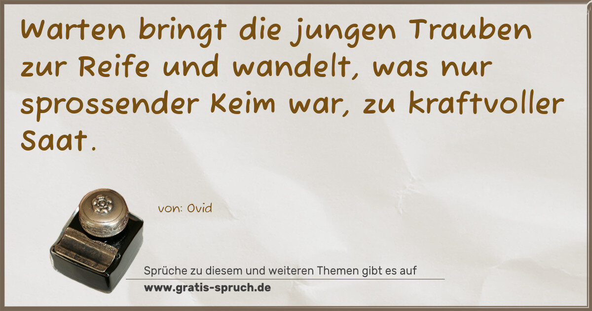 Warten bringt die jungen Trauben zur Reife und wandelt, was nur sprossender Keim war, zu kraftvoller Saat.