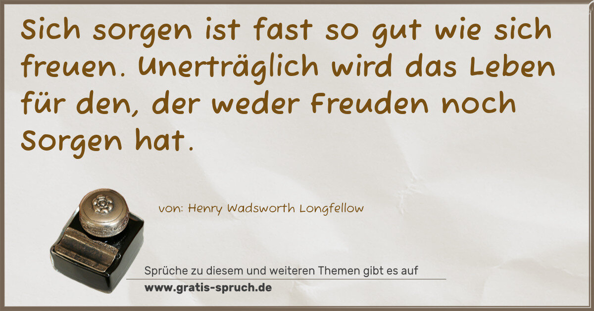 Sich sorgen ist fast so gut wie sich freuen. Unerträglich wird das Leben für den, der weder Freuden noch Sorgen hat.