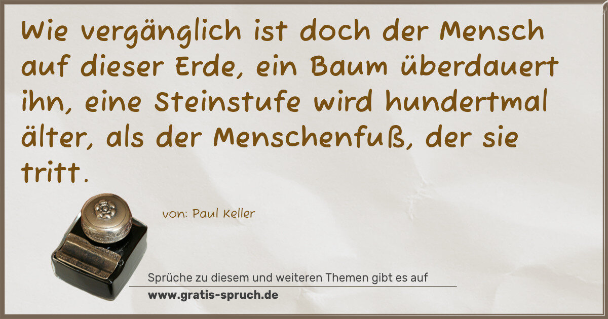 »Wie vergänglich ist doch der Mensch auf dieser Erde, ein Baum überdauert ihn, eine Steinstufe wird hundertmal älter, als der Menschenfuß, der sie tritt.